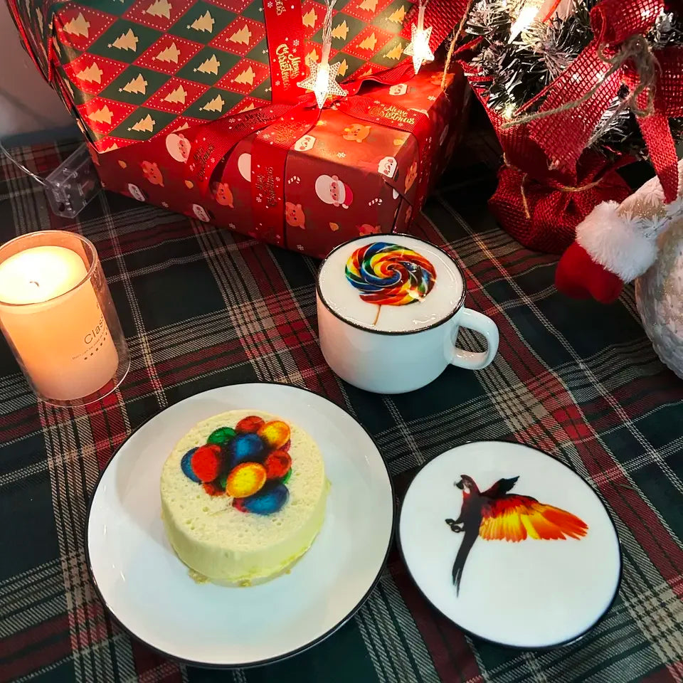 inspiring art atop the milk froth layer of coffee beverages, both hot and cold.